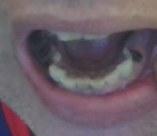 Momentan können potenzielle neue Zähne nur mit Röntgenstrahlen sichtbar gemacht werden, und sie sind noch nicht durchgebrochen. Ich wollte mir gerade ein Röntgengerät anschaffen, hatte aber keine Gelegenheit dazu, und wir müssen auf das nächste Foto warten. Wenn der Zahn durchbricht, kann es zu Verzögerungen kommen und er ist nicht weiß, da er sich schnell entzündet und Karies entstehen kann, sobald der Zahn durchbricht – und zwar innerhalb kürzester Zeit. Alle Zähne, die durchgebrochen sind, habe ich innerhalb kurzer Zeit wieder verloren, und sie sind alle verfault.
